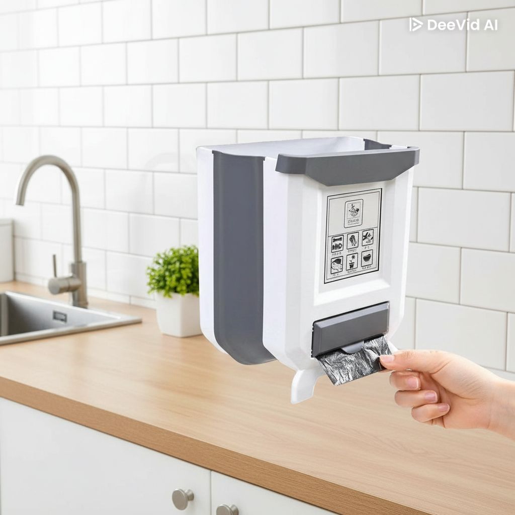 1. It can be easily hang on the kitchen door or cabinet door,easy to mount and it stores nicely.This garbage container is easy to clean up and waterproof.
